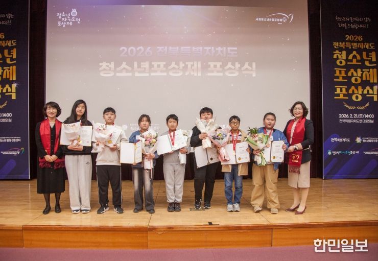 한민일보 서울포커스 김용택 기자 | 정읍시 청소년문화체육관 소속 청소년 7명이 지난 21일 전북특별자치도청에서 열린 ‘2026년 청소년성취포상제 포상식’에서 스스로 세운 목표를 달성한 공로를 인정받아 금장과 은장, 동장을 나란히 수상했다.