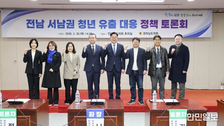 한민일보 서울포커스 임경복 기자 | 전라남도의회는 2026년 2월 26일 오후 2시 도의회 초의실에서 ‘전남 서남권 청년 유출 대응 정책토론회’를 성공적으로 개최했다고 밝혔다.