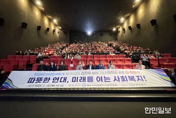 한민일보 서울포커스 임광현 기자 | 여수시사회복지시설연합회(회장 이희승)는 2026년 2월 26일, CGV 여수웅천점에서 '회장 이·취임식 및 신년교례회'를 개최하고, 회원들과 함께 영화관람 행사를 진행했다.