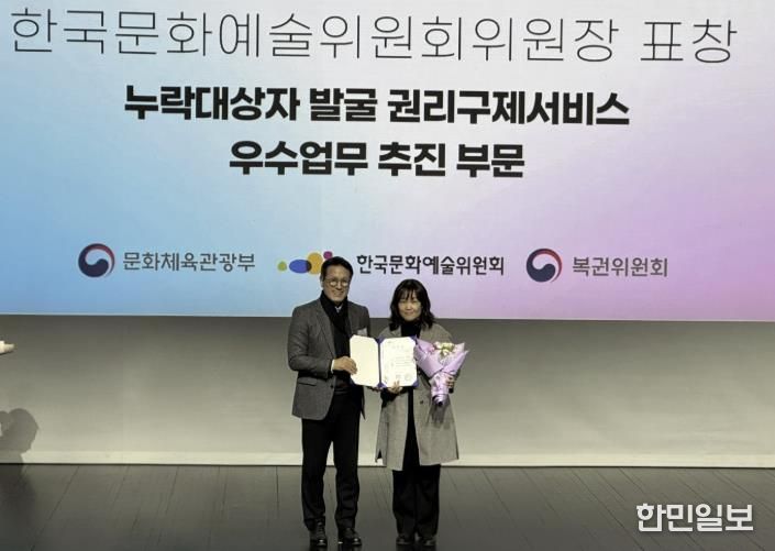한민일보 서울포커스 임경복 기자 | 군포시 수리동이 전국 3천6백여개 읍면동을 대상으로 한 “2025년 통합문화이용권(문화누리카드) 누락대상자 권리구제 서비스” 부문 우수기관으로 선정됐다. 이에 따라 지난 2월 26일 모두예술극장(서울 서대문구 충정로 7)에서 열린 시상식에서 한국문화예술위원회 위원장상을 수상했다.