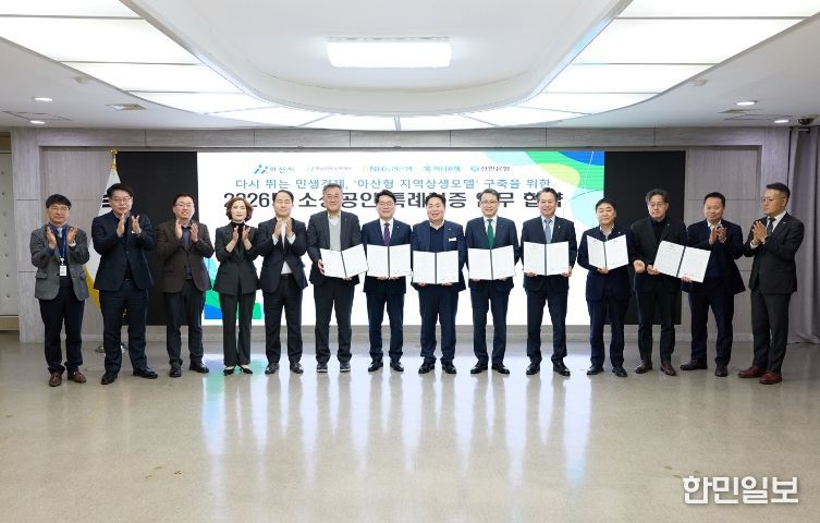 한민일보 서울포커스 임경복 기자 | 아산시는 27일 소상공인 금융지원을 강화하기 위해 충남신용보증재단 및 지역 금융기관인 NH농협은행, 하나은행, 신한은행과 ‘2026년 소상공인 특례보증 공동출연 업무협약’을 체결했다.