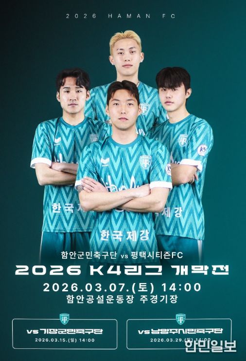 한민일보 서울포커스 최성훈 기자 | 함안군은 오는 3월 7일 오후 2시 함안공설운동장에서 함안을 대표하는 함안군민축구단이 평택시티즌을 상대로 2026시즌 케이포(K4)리그 홈 개막전을 치른다고 1일 밝혔다.