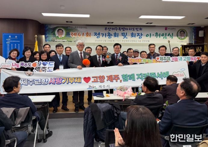 한민일보 서울포커스 김다남 기자 | 제주시는 2월 28일 부산제주도민회관에서 열린 ‘제37대 부산제주특별자치도민회 회장 이·취임식’ 현장에서 고향사랑기부제 지정기부사업 홍보 캠페인을 진행했다.