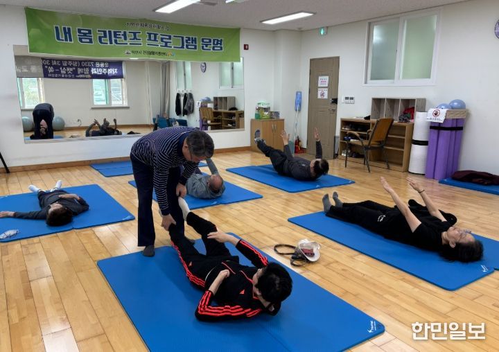 프로그램은 짐볼과 세라밴드 등 소도구를 활용해 신체 협응력과 균형 조절 능력 향상, 근력 강화, 자세 교정에 중점을 두고 진행된다.