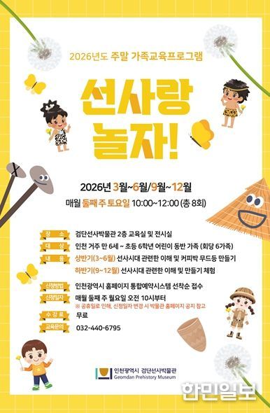 한민일보 서울포커스 유창렬 기자 | 인천광역시 검단선사박물관은 2026년 새 학기를 맞아 가족이 함께 즐길 수 있는 주말 가족교육프로그램 '선사랑 놀자!'를 운영한다고 밝혔다.