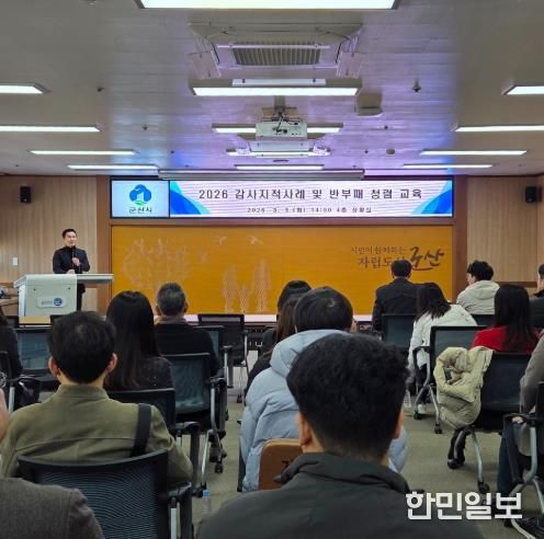 한민일보 서울포커스 김용택 기자 | 군산시는 지난 3월 3일 시청 상황실에서 27개 읍·면·동 회계업무 담당 계장 및 직원들을 대상으로 ‘감사사례 및 부패방지 청렴 교육’을 실시해 행정 신뢰도 제고와 청렴 문화 확산의 계기를 조성했다.