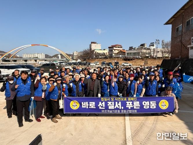 한민일보 서울포커스 김다남 기자 | 바르게살기운동 영동군협의회는 4일 지역사회 기초질서 확립과 쾌적한 생활환경 조성을 위해 ‘법질서 및 자연보호 캠페인’과 ‘대한민국 새단장 국토대청결 운동’을 연계해 실시했다.