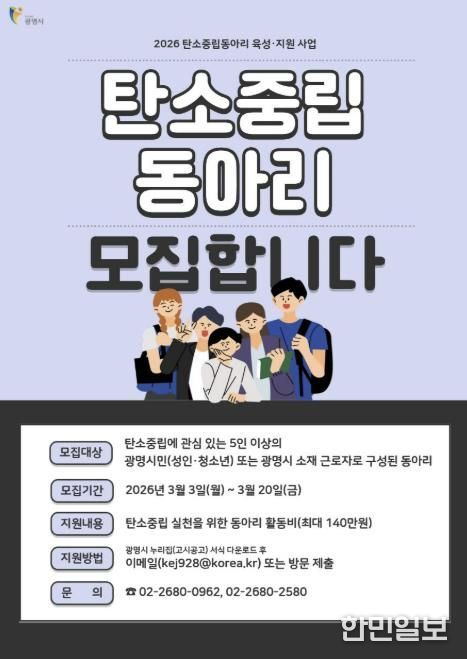 한편, 광명시는 지역사회 탄소중립 시민 실천을 확대하기 위해 2020년부터 2025년까지 6년 동안 총 78개 동아리를 지원하며 시민모임 중심의 탄소중립 활동을 꾸준히 육성했다.