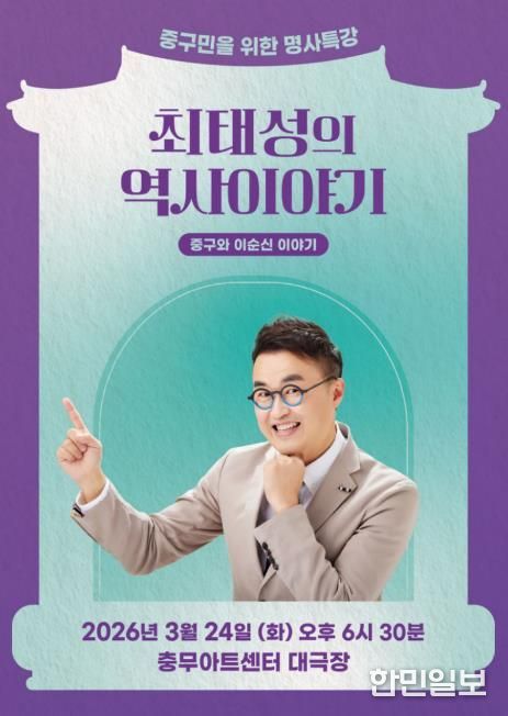 한민일보 서울포커스 김서윤 기자 | 서울 중구문화재단은 오는 3월 24일 오후 6시 30분 충무아트센터 대극장에서 중구민을 위한 명사 특강 ‘최태성의 역사 이야기’를 개최한다.
