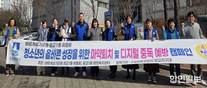 백인서 광교1동 바르게살기운동위원회 위원장은 “청소년들이 바르게 성장할 수 있도록 지역사회가 함께 관심을 갖는 것이 중요하며, 앞으로도 지속적인 캠페인과 활동을 통해 건강한 지역사회 조성에 앞장서겠다”고 밝혔다.