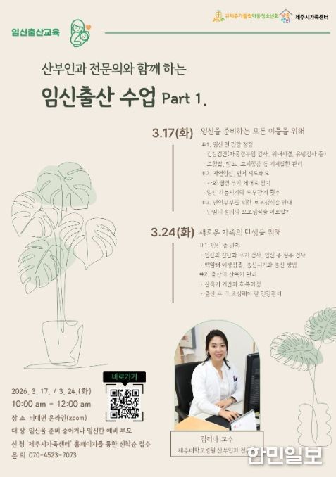 한민일보 서울포커스 김다남 기자 | 제주시는 제주시가족센터와 함께 건강한 임신과 출산을 준비하는 예비 부모를 대상으로 ‘임신출산수업 part 1’을 운영한다.