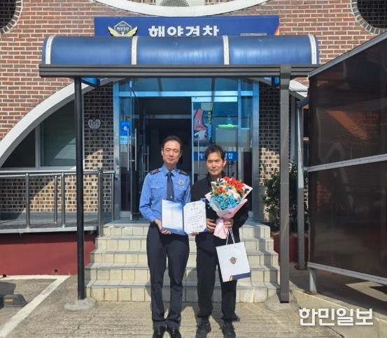 한민일보 서울포커스 박용남 기자 | 완도해양경찰서는 지난달 20일 전남 장흥군 신동항 인근 해상에서 발생한 침수선박 사고 현장에서 승선원 4명을 구조한 김천권 선장에게 감사장을 수여했다.