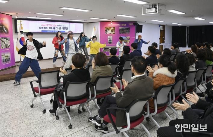 한민일보 서울포커스 임광현 기자 | 지난 3일 오전 9시 해운대구청 5층 대회의실에서 신나는 케이팝 댄스 공연이 펼쳐졌다.
