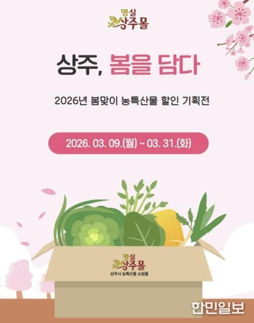 한민일보 서울포커스 김봉순 기자 | 상주시는 봄을 맞아 시민들에게 신선한 농특산물 먹거리를 합리적인 가격에 제공하고, 지역 농가와 생산자의 판로 확대를 지원하기 위해 ‘상주, 봄을 담다’봄 농특산물 먹거리 온라인몰 할인 기획전을 운영한다.