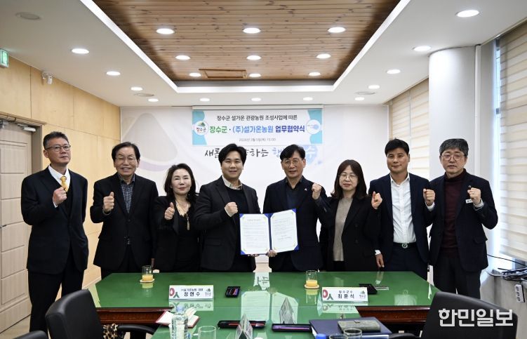 한민일보 서울포커스 김용택 기자 | 장수군은 5일 군청 소통회의실에서 농업회사법인 ㈜설가온농원과 관광농원 조성 추진을 위한 업무협약(MOU)을 체결했다.