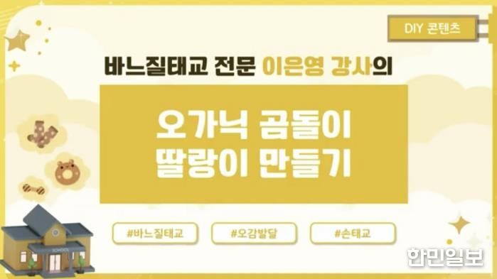 또한 3강은 엄마의 소근육 운동과 함께 아기의 두뇌 발달과 정서적 교감을 돕는 손수 제작(DIY) 손태교 교육으로 진행된다. 양평군보건소는 선착순 40명을 모집해 손수 제작(DIY) 바느질 태교 재료(곰돌이 딸랑이 만들기)를 자택으로 배송할 예정이며, 참여자는 동영상 강의를 보며 2주간 교육을 받을 수 있다.