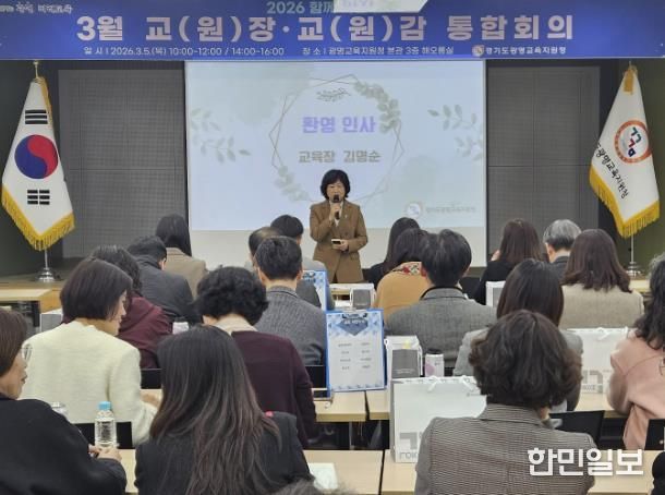 한민일보 서울포커스 임광현 기자 | 경기도광명교육지원청은 3월 5일, 광명교육지원청 3층 해오름실에서 2026 해오름 광명교육과 경기미래교육 구현을 위한 ‘2026년 3월 교(원)장, 교(원)감 통합회의’를 운영했다. 이번 통합회의는 학년 초 학교와 교육지원청, 도교육청 간의 협력을 강화하고, 학교 중심의 교육정책, 미래장학, 교육과정운영의 선순환 체제를 통해 학교 중심 행정 지원의 기틀을 마련하고자 진행됐다.