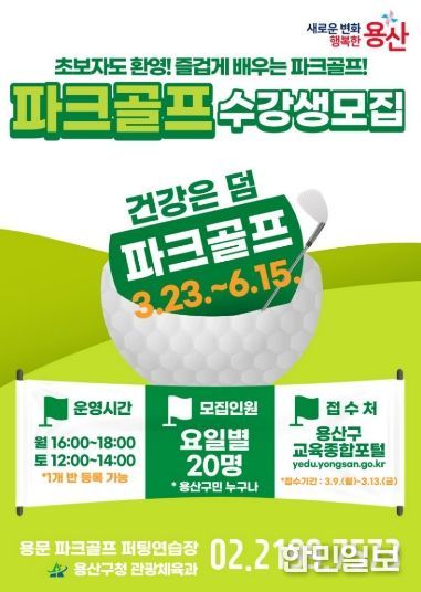 한민일보 서울포커스 최성훈 기자 | 서울 용산구가 구민의 건강 증진과 여가 활성화를 위해 ‘2026년 1기 용산구 파크골프교실’ 수강생을 모집한다.