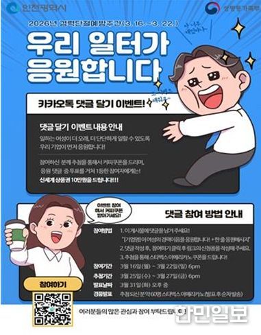 한민일보 서울포커스 유창렬 기자 | 인천여성가족재단 인천광역새일센터는 2026년 경력단절예방주간(3월 셋째주)를 맞아 3월 16일부터 22일까지 “우리 일터가 응원합니다.” SNS 댓글 달기를 개최한다.