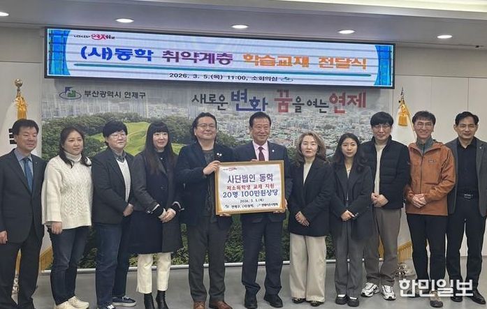 한민일보 서울포커스 임광현 기자 | 연제구는 지난 3월 5일, 사단법인 동학(이사장 남중현)으로부터 관내 저소득 취약계층 세대 지원을 위한 학습교재를 전달받았다.