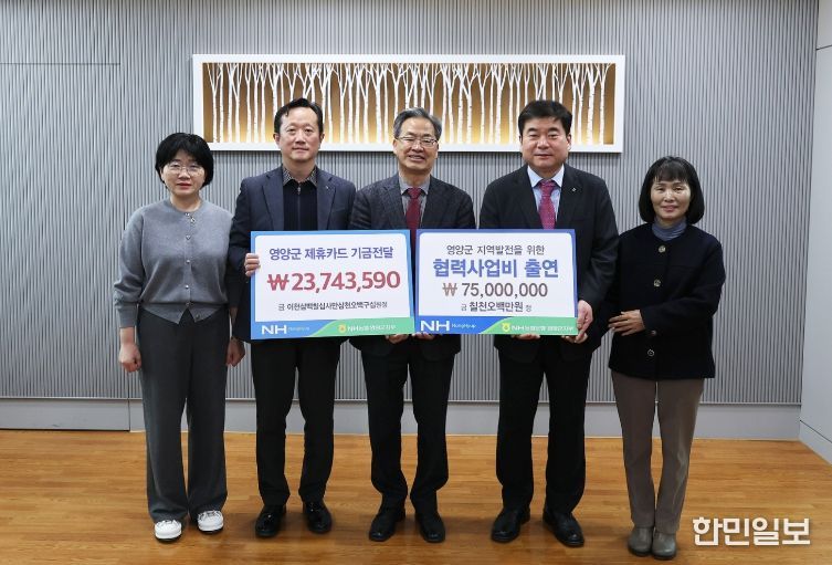 한민일보 서울포커스 임경복 기자 | 영양군은 6일 NH농협은행 영양군지부로부터 영양군 금고계약에 따른 협력사업비 7,500만 원 및 제휴카드 적립기금 2,374만 원을 전달받았다.