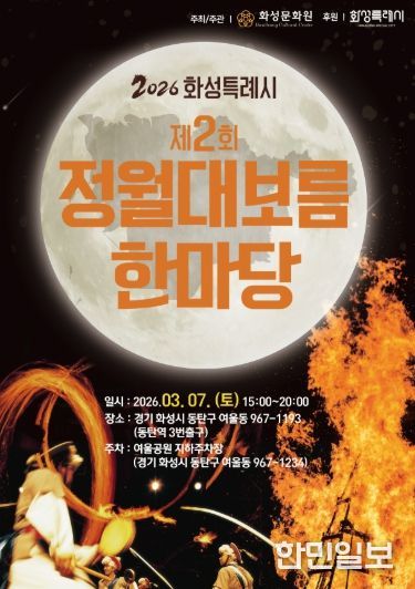 한민일보 서울포커스 진광성 기자 | ‘2026년 화성특례시 제2회 정월대보름 한마당’이 오는 3월 7일 오후 3시부터 8시까지 동탄역 3번 출구 앞 광장에서 열린다.