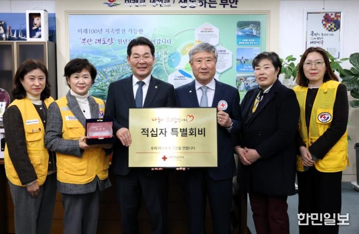 한민일보 서울포커스 김용택 기자 | 부안군은 기부문화 확산과 적십자 회비 모금에 군민들의 자발적 참여 분위기를 조성하기 위해 6일 군수실에서 2026년도 적십자 특별회비 전달식을 갖고 대한적십자사 전북지사에 특별회비를 전달했다고 밝혔다.