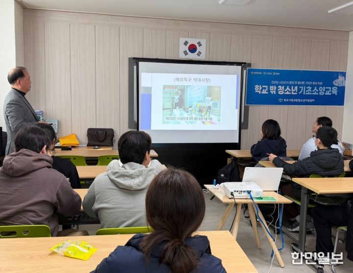 한민일보 서울포커스 임광현 기자 | 목포시 학교밖청소년지원센터는 지난 3일 전남마약퇴치운동본부, 목포시청소년노동인권센터와 연계해 관내 학교 밖 청소년 14명에게 마약예방교육과 청소년 근로권익교육을 실시했다.