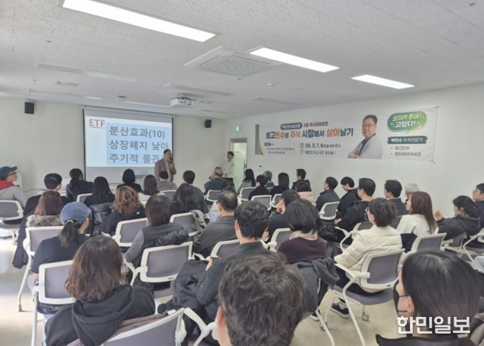 이번 강연에는 사전 신청자 45명 전원이 참석해 최근 높아진 주식 투자에 대한 시민들의 관심을 실감하게 했다. 강연에서는 최고민수 투자 전문가가 강연자로 나서 주식 시장의 기본 개념과 투자 원칙을 알기 쉽게 설명했다. 특히, 이날 최 강사는 투자 입문자에게 적합한 이티에프(ETF) 투자 방식을 소개하고 최근 시장 흐름을 짚어보며 개인 투자자가 참고할 수 있는 투자 접근 방법을 함께 전달했다.