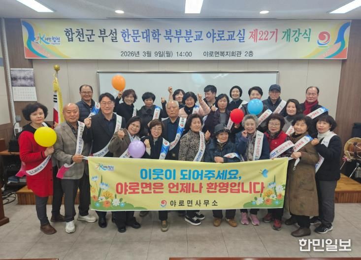 한편, 합천군 부설 한문대학 북부분교 야로교실은 매주 월요일과 목요일 주2회 수업으로 운영되며, 연말에는 수료식도 개최할 예정이다