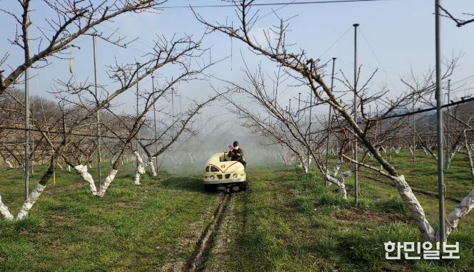 한민일보 서울포커스 김다남 기자 | 옥천군농업기술센터는 복숭아 개화기를 앞두고 월동 병해충 적기 방제를 위한 현장 기술지도를 강화하고 있다.