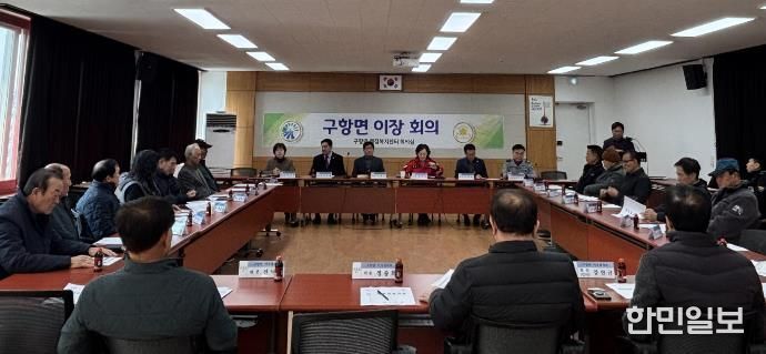 이날 회의에는 배미자 구항면장을 비롯한 각 마을 이장이 참석해 봄철 주요 현안과 주민 생활과 밀접한 행정사항을 공유했다.