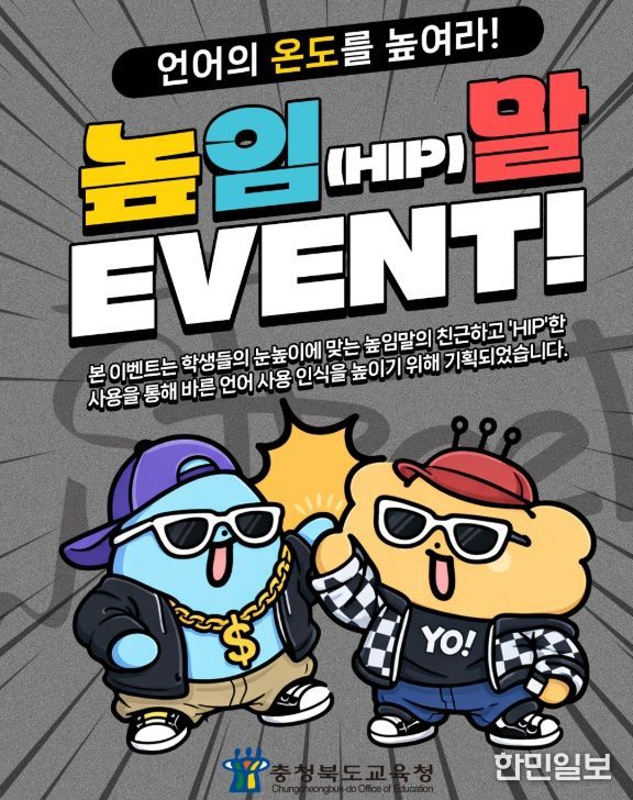 한민일보 서울포커스 임경복 기자 | 충청북도교육청은 학생들의 올바른 언어 사용과 존중 문화를 확산하기 위해 18일까지 충북교육청 인스타그램에서 '언어의 온도를 높여라! 높임말 이벤트'를 운영한다고 밝혔다.
