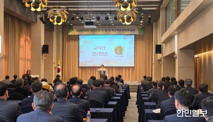 한민일보 서울포커스 김봉순 기자 | 경상북도경주교육지원청은 황룡원 1층 대연회장에서 3월 9일 오전 10시 30분 유·초·중·고·특수학교 교(원)장 회의를, 오후 2시 30분에는 교(원)감 회의를 개최하여 2026학년도 상반기 과별 주요 업무를 전달하고 학교 현장과의 협력을 강화하는 시간을 가졌다.