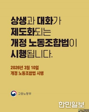 한민일보 서울포커스 임경복 기자 | 상생과 대화가 제도화되는 개정 노동조합법이 시행됩니다.