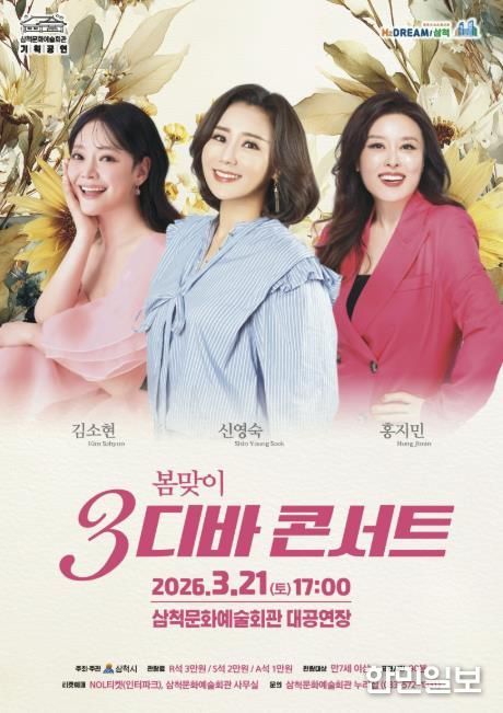 한민일보 서울포커스 임경복 기자 | 삼척시는 봄을 맞아 시민들에게 문화 향유 기회를 제공하기 위해 오는 3월 21일 오후 5시 삼척문화예술회관 대공연장에서 ‘봄맞이 3디바 콘서트’ 초청공연을 개최한다.