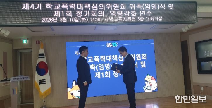 한민일보 서울포커스 곽중희 기자 | 태백교육지원청은 3월 10일 태백교육지원청 제4기 학교폭력대책심의위원회 위촉(임명)장 수여식 및 학교폭력대책심의위원 역량강화 연수를 실시했다.