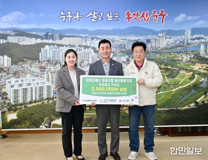 한민일보 서울포커스 기자 | 이비티에스 협동조합 울산중부지국이 3월 11일 오후 2시 중구청 구청장실을 찾아 울산사회복지공동모금회를 통해 이웃돕기 후원금 100만 원과 쌀, 라면, 커피 등 150만 원 상당의 후원 물품을 전달했다.