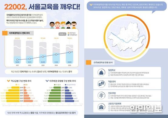 2025년 4월 1일 기준 서울의 이주배경학생은 22,002명으로 최근 5년간 13.6% 증가했다.