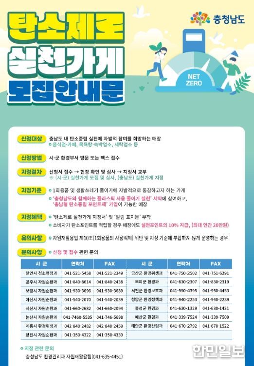 지정 기준은 1회용품 및 생활쓰레기 줄이기에 자발적으로 동참하고 충남형 탄소중립 포인트제 가입이 가능하면 된다.