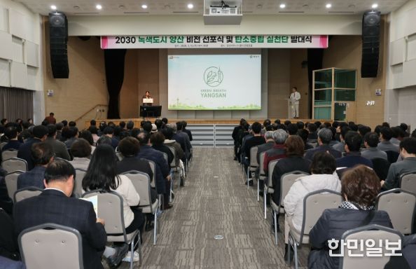 한민일보 서울포커스 김은금 기자 | 양산시는 2026년 3월 12일 양산비즈니스센터 컨벤션홀에서 '2030 녹색도시 양산' 비전 선포식과 탄소중립 실천단 발대식을 개최하고, 지속가능한 녹색도시로의 본격적인 전환을 공식 선언했다.