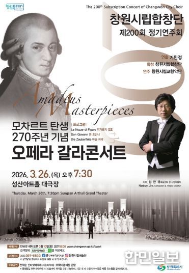 김만기 문화관광체육국장은 “제200회를 맞은 창원시립합창단 정기연주회를 방문하시는 관객분들이 모차르트 오페라와 합창이 어우러진 아름다운 하모니 속에서 음악이 전하는 따뜻한 감동을 나누는 시간이 되기를 기대한다”고 말했다.