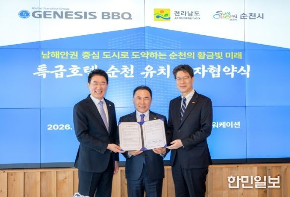 한민일보 서울포커스 임광현 기자 | 순천시는 13일 전라남도, 제너시스BBQ와 함께 정원워케이션센터에서 ‘특급호텔 건립 등을 위한 투자협약(MOU)’을 체결했다고 밝혔다.