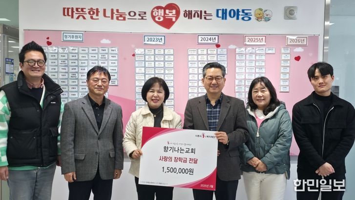 김근선 대야동장은 “꾸준히 지역사회를 위해 나눔을 실천해 주시는 향기나는교회와 김호윤 목사에게 깊이 감사드린다”라며 “전달해 주신 장학금은 대야동 지역사회보장협의체를 통해 대학생과 중·고등학생 가구를 선정해 소중히 전달하겠다”라고 말했다.