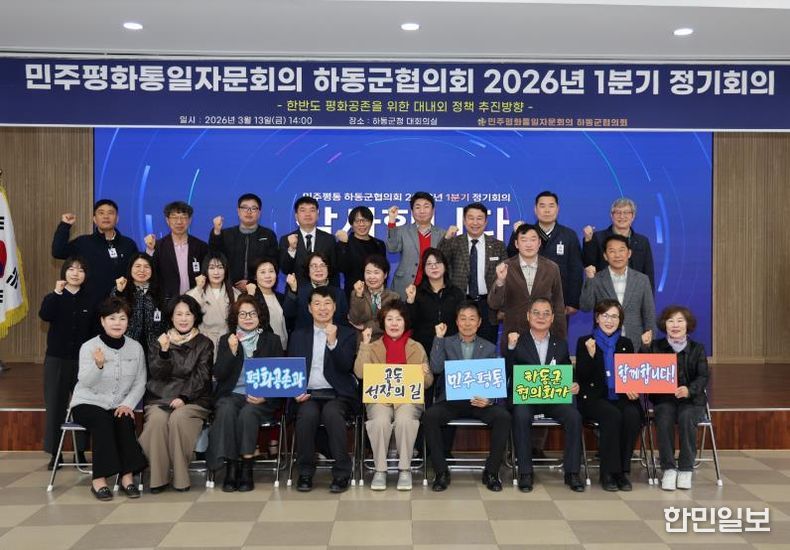 한민일보 서울포커스 김서윤 기자 | 민주평화통일자문회의 하동군협의회가 3월 13일 오후 2시 하동군청 대회의실에서 ‘한반도 평화공존을 위한 대내외 정책 추진방향’을 주제로 2026년 1분기 정기회의를 개최했다.