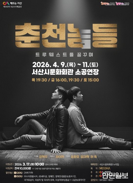 정동호 서산시 문화시설사업소장은 “연극 ‘춘천놈들’은 꿈을 좇는 청춘들의 이야기 속에서 현실의 고민과 우정의 의미를 진솔하게 담아낸 작품”이라며 “시민들이 공감과 감동을 함께 느낄 수 있는 시간이 되길 바란다”라고 말했다.