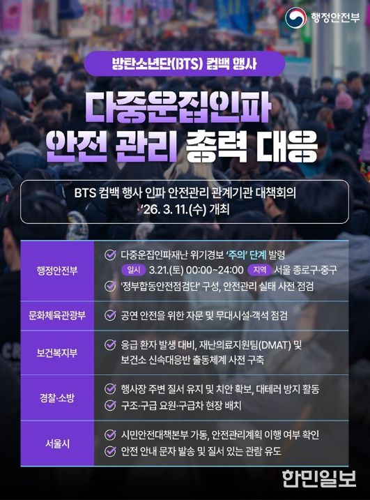 - BTS 컴백 행사 인파 안전관리 관계기관 대책회의 '26.3.11.(수) 개최