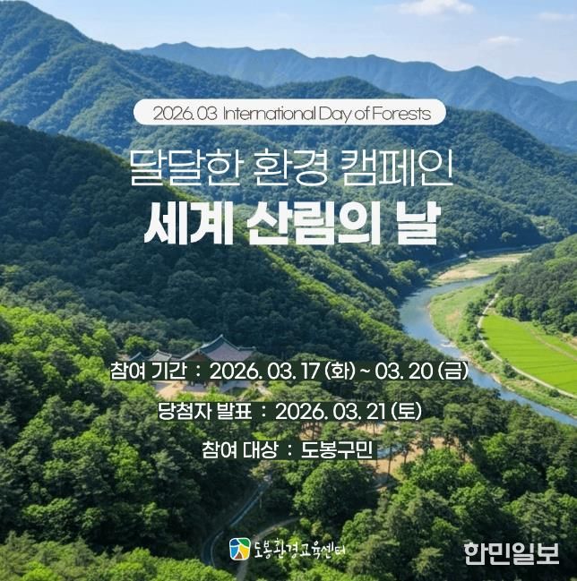 참여는 3월 17일부터 20일까지 도봉환경교육센터 누리집에 게시된 ‘세계 산림의 날’ 카드뉴스를 통해 산림 보호의 중요성을 먼저 학습한 뒤, 연결 링크로 접속해 실천 사진을 제출하는 것으로 이뤄진다.