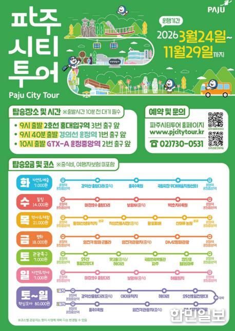 한민일보 서울포커스 진광성 기자 | 파주시는 봄철을 맞아 오는 24일부터 '2026년 파주시티투어’를 운행을 개시한다.