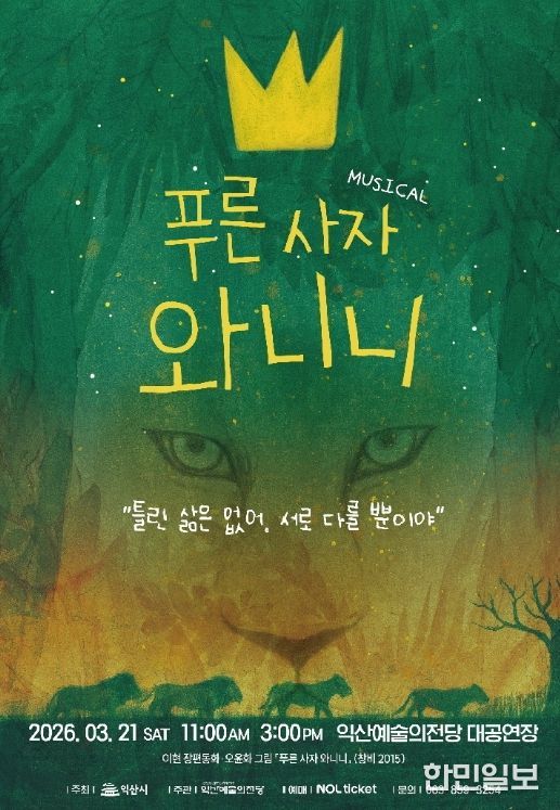 한민일보 서울포커스 김용택 기자 | 익산시가 온 가족이 함께 즐길 수 있는 창작뮤지컬 '푸른 사자 와니니'를 무대에 올린다.